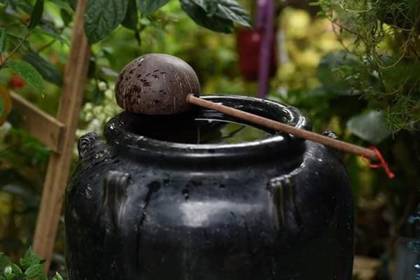 Chiếc chum nhỏ đặt ở góc vườn vừa hoài cổ vừa thêm cảm giác thân thuộc.