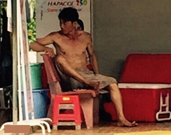 Dũng không mặc áo, đảo quanh chợ Kinh khiến tiểu thương không dám mở cửa. Ảnh: Nhật Tân.
