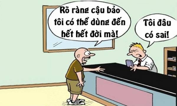 - Cái đồng hồ tôi mua ở đây mới dùng được có nửa năm đã hỏng. Thế mà cậu dám bảo là tôi có thể dùng nó đến hết đời.