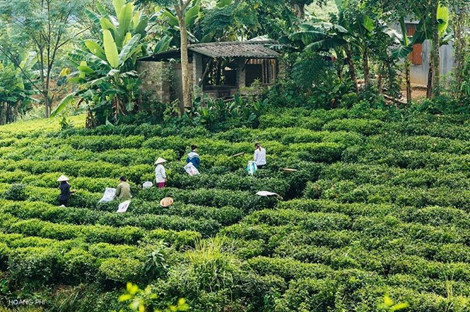 Đến với Tân Cương, du khách có thể hòa mình cũng những búp chè xanh non mơn mởn, tận hưởng trực tiếp hương chè thơm mát.