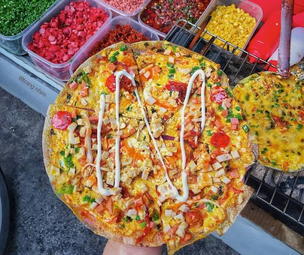 Bánh tráng nướng phô mai: Địa chỉ: Đội Cấn. Mức giá: 30.000 đồng/chiếc.