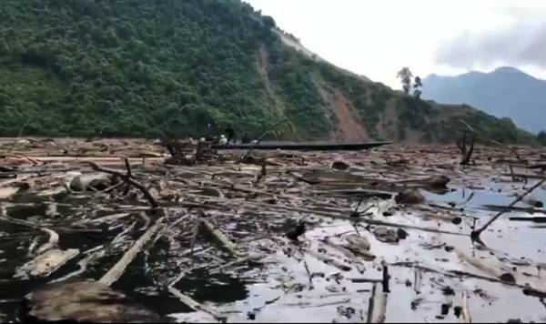 Nước lũ tràn về với tốc độ kinh người nhấn chìm nhà cửa, tài sản, cuốn phăng nhiều vật dụng cùng cơ man tạp chất, biến lòng hồ thành một bãi chứa đậm đặc khổng lồ. Dễ nhận thấy rác giăng kín khắp nẻo, kéo dài hàng km, ken đặc nhất là các xã Hữu Khuông, Mai Sơn, Nhôn Mai của huyện Tương Dương.