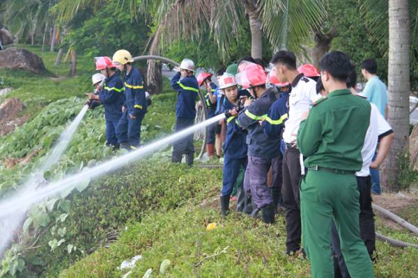 Lực lượng chức năng đang chữa cháy tại khu vực Mũi Súng.
