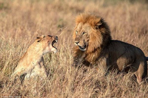 Cả hai vừa diễn ra một cuộc yêu ở Massai Mara nhưng sau đó là những tiếng gầm của sư tử cái. Có vẻ như cô không hài lòng với chuyện vừa diễn ra.