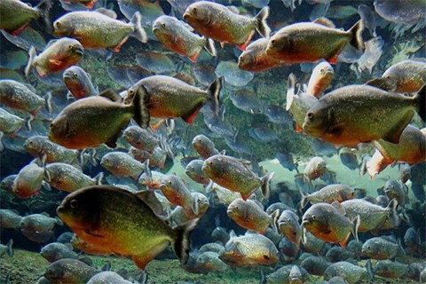 Nhà quay phim Charlie Hamilton-James quyết định thử xem cá piranha hung dữ tới mức nào bằng cách gắn miếng thịt vào camera dưới nước. Thông qua camera dưới nước nối với màn hình trên thuyền, Charlie có thể quan sát làn nước đục bên dưới.