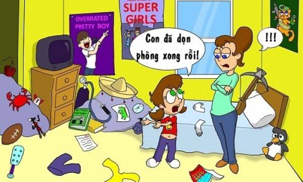 - Phòng con sạch mà mẹ, con vừa dọn tối qua.