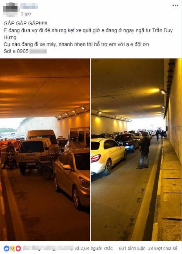 Cụ thể, sáng nay (ngày 27/9), một ông bố "cuống cuồng" đăng lên mạng xã hội tìm kiếm sự trợ giúp từ cư dân mạng. Anh này cho biết mình đang đưa vợ đi sinh nhưng mắc ngay đoạn đường tắc ở khu vực ngã tư Trần Duy Hưng. Anh "cầu cứu" để mong có ai đó đi xe máy đến hỗ trợ hai vợ chồng.