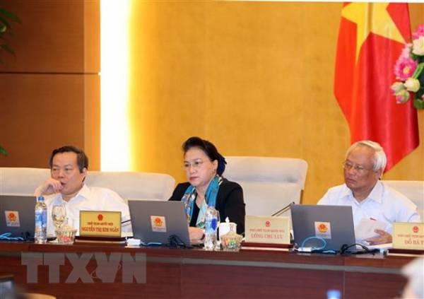 Chủ tịch Quốc hội Nguyễn Thị Kim Ngân và các Phó Chủ tịch Quốc hội điều hành phiên họp. (Ảnh: Trọng Đức/TTXVN)