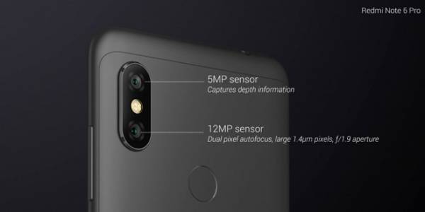 Camera kép phía sau của Redmi Note 6 Pro sử dụng một cảm biến chính 12MP và một cảm biến độ sâu 5MP. Thông số này nghe có vẻ tương tự như Redmi Note 5 Pro trước đó nhưng chúng lại có các tính năng mới: kích cỡ pixel lớn hơn - 1,4µm (Redmi Note 5 Pro là 1,25µm) và khẩu độ lớn hơn - f / 1,9 (Redmi Note 5 Pro là f / 2.2) và lấy nét Dual Pixel AF. Về cơ bản, bộ phận này là camera kép từ Redmi Note 5 AI Dual Camera.
