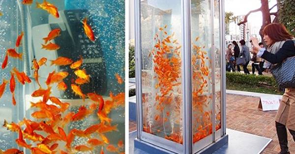 Những bốt điện thoại bị bỏ hoang ở Nhật đã được cải biến để tạo thành các bể cá cảnh đầy nghệ thuật. Ở Nhật Bản, cá vàng tượng tưng cho sự hạnh phúc, thịnh vượng.