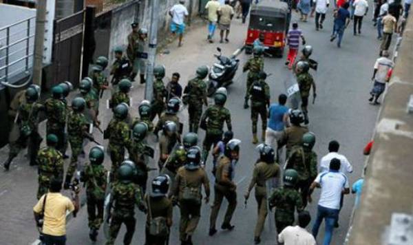 Lực lượng đặc nhiệm và cảnh sát Sri Lanka trước cổng công ty dầu khí nhà nước Ceylon.