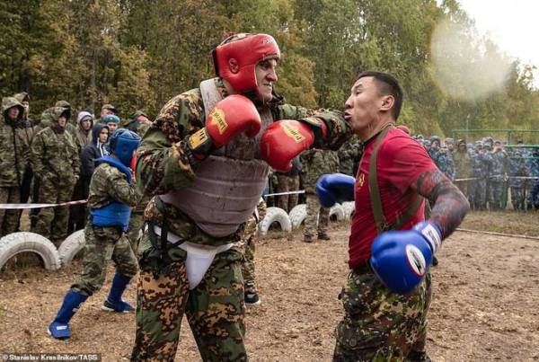 Một đặc nhiệm khác đang cố chặn cú đấm từ đồng đội. Thử thách so găng này đáng sợ đến nỗi được các binh sĩ đặt biệt danh là "12 phút dưới địa ngục". Ảnh: TASS.