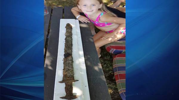 Trong lúc bơi ở hồ Vidöstern tại Thụy Điển, một bé gái 8 tuổi đã phát hiện thanh kiếm bằng sắt thời tiền Viking.