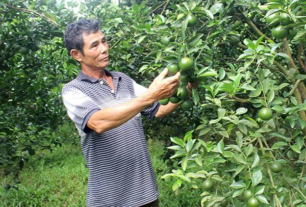 Ông Phan Văn Minh trong vườn quýt sạch của mình tại xã Phú Lý (huyện Vĩnh Cửu, tỉnh Đồng Nai). Ảnh: H. Giang