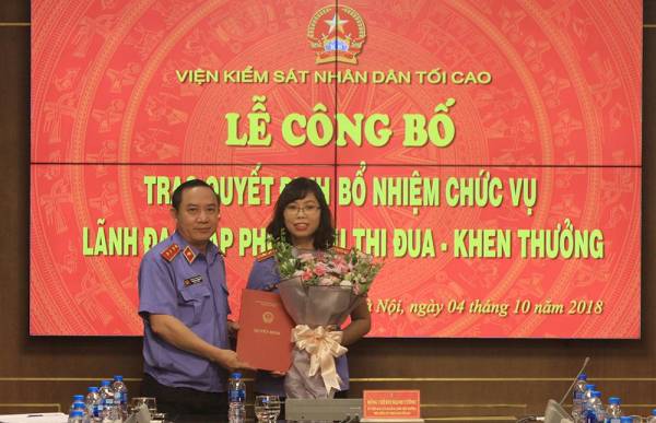 Tại buổi Lễ, đại diện Vụ Tổ chức cán bộ VKSND tối cao công bố Quyết định số 57/QĐ-VKSTC ngày 20/9/2018 của Viện trưởng VKSND tối cao về việc bổ nhiệm bà Ngô Thị Xuân Huyên, Kiểm sát viên trung cấp, Phó Trưởng phòng giữ chức vụ Trưởng phòng Tham mưu - Tổng hợp, Vụ Thi đua - Khen thưởng.