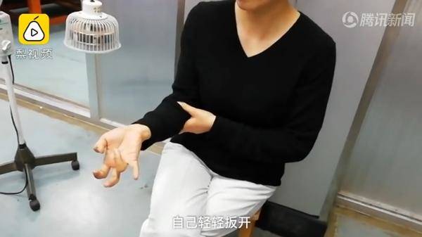 Một buổi sáng, cô thức dậy và cảm thấy đau dữ dội ở vùng bàn tay, các ngón tay trở nên đơ cứng lại không thể cử động dù chỉ là cầm nắm vật nhỏ. Tư thế co quắp hệt như khi đang sử dụng điện thoại vậy. Quá hoảng sợ, cô nhanh chóng đến bệnh viện và kết quả cho thấy bệnh nhân đã bị viêm màng bao xung quanh gân (phần dây nối giữa xương và các lớp cơ).