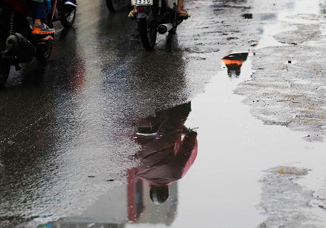 Đứng trên đường phố Hà Nội sáng nay, cảm giác lạnh dường như tăng lên vì có gió kèm theo mưa