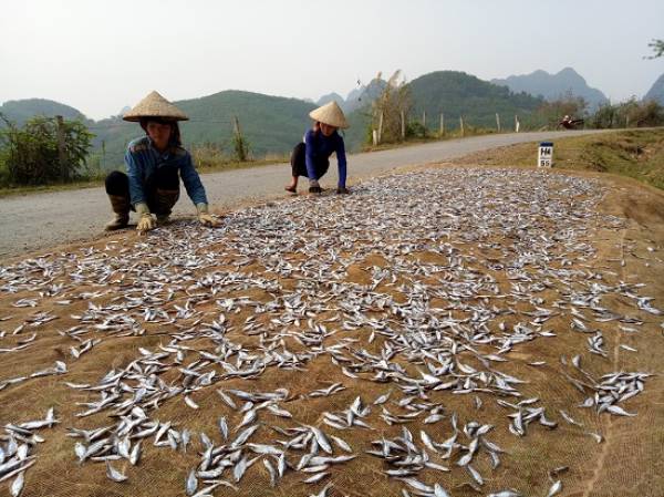 Cá được phơi khô thật kỹ trước khi bán cho các thương lái