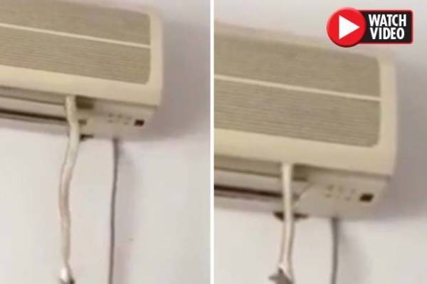 Một con rắn được nhìn thấy từ từ chui ra khỏi điều hòa nhiệt độ trong căn hộ ở Trung Quốc, khiến người xem video hãi hùng.