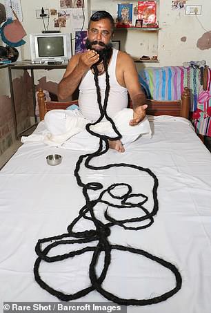 Trong suốt 33 năm, ông Girdhar Vyas ở Ấn Độ chưa từng cạo râu mà chỉ dùng chanh và sữa mát-xa cho bộ râu "khủng" của mình mỗi tối.
