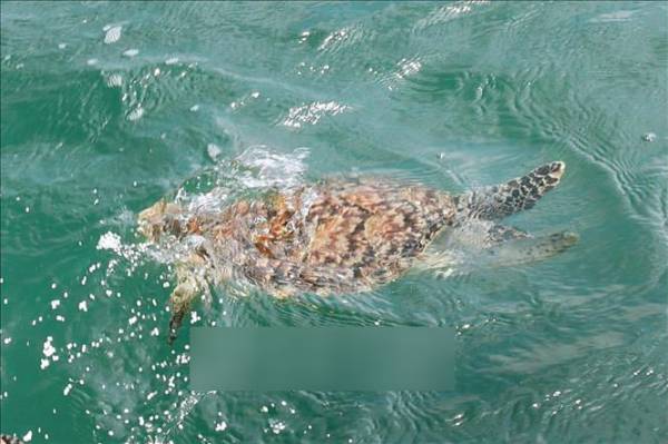 Sáng 7/10, Chi cục thủy sản tỉnh Bình Thuận đã tiếp nhận một cá thể đồi mồi do một người dân ở huyện Hàm Thuận Nam, tỉnh Bình Thuận tự nguyện bàn giao. Ngay sau đó, Chi cục đã thả cá thể quý hiếm này về biển.