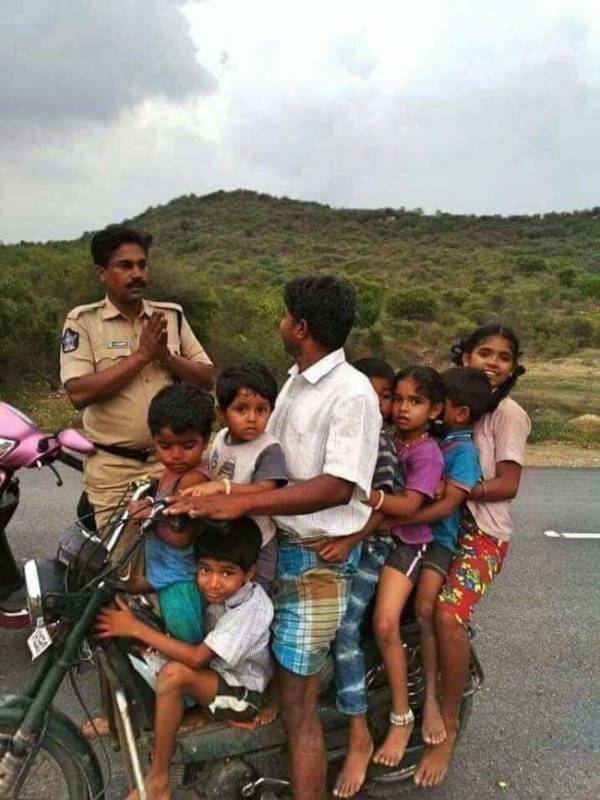 Đó là chú thích cho bức ảnh người đàn ông chở một lúc 7 đứa con trên đường phố Malaysia.