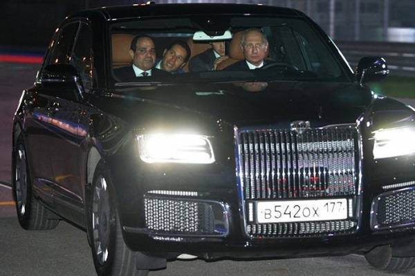 Tổng thống Nga Vladimir Putin đã ngồi sau vô lăng điều khiển chiếc xe sedan Aurus mới ra mắt trong lễ nhậm chức Tổng thống hồi tháng 5 của mình đưa người đồng cấp Ai Cập Abdel Fatah el-Sisi đi tham quan đường đua F1 ở thành phố Sochi của Nga.