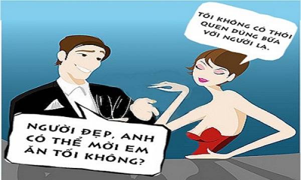 - Người đẹp, chẳng hay anh có thể mời em ăn tối không?