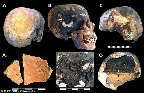 Các nhà nghiên cứu còn phát hiện những vết đen trên xương cốt, là dấu hiệu của sắt còn lại khi máu bốc hơi. Đây được coi là dấu hiệu đầu tiên cho thấy phần chất lỏng trong cơ thể người bị bốc hơi hoàn toàn.