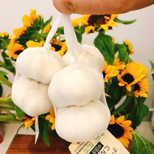 Củ tỏi organic Nhật có hình dáng to, tròn và trắng hơn nhiều so với tỏi Việt Nam. Tỏi Nhật được bán theo cặp đựng trong túi lưới nhỏ, nên người tiêu dùng thường mua cả túi 200.000 đồng 2 củ tỏi.