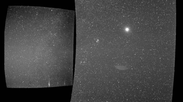 Trong hình ảnh được chụp bằng WISPR, máy chụp ảnh trường rộng cho đầu dò năng lượng mặt trời, cũng là công cụ ghi lại hình ảnh duy nhất trên Parker, Trái đất là một chấm nhỏ, tròn, sáng.