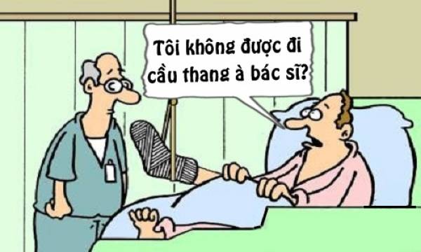 - Này bác sĩ, bây giờ chân tôi đỡ nhiều rồi, tôi có đi cầu thang được chưa?