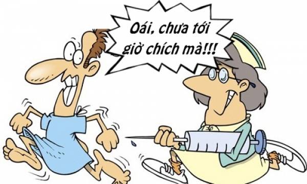 Mời quý vị và các bạn thư giãn buổi trưa với mẩu truyện cười: Bệnh nhân choáng váng với lý do y tá đòi tiêm sớm.