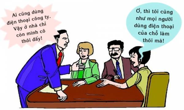 - Ấy, sao mọi người lại nhìn tôi như thế. Tôi cũng dùng điện thoại của chỗ làm như mọi người thôi mà!