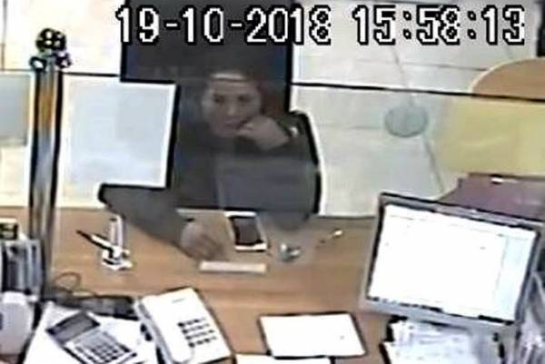 Người này vừa vào ngân hàng định giao dịch gì đó nhưng không thực hiện. Người phụ nữ chỉ xuất hiện vài phút và lấy điện thoại nhanh chóng đi mất.