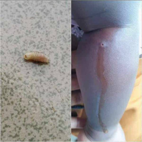 Bác sĩ nói với tôi, đó là ấu trùng ruồi tumbu. Nó có thể xảy đến với trẻ sơ sinh và trẻ mới tập đi, thậm chí là cả người lớn. Đặc biệt là khi quần áo bị ẩm ướt hoặc phơi ngoài trời, con ruồi đẻ trứng trên quần áo hoặc ruồi đẻ trứng trên cỏ, quần áo rơi xuống cỏ và dính phải. Khi trẻ mặc quần áo, trứng ruồi xâm nhập vào da và bắt đầu sinh sôi thành con giòi.