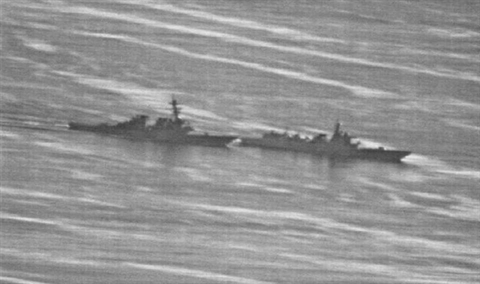 Màn đối đầu hay cấn giữa khu trục hạm Mỹ (phía sau) và Trung Quốc (phía trước) tại biển Đông