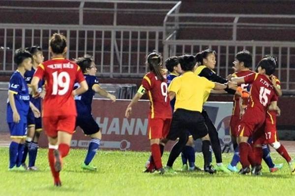 Xem Video: Nữ cầu thủ đánh nhau ở Giải VĐQG trên sân Thống Nhất