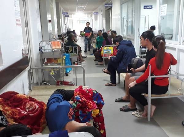 Do bệnh nhân đông, bệnh viện đã tăng gấp đôi số giường bệnh và tận dụng tối đa các phòng bệnh tại cả 3 tầng của khoa Y học nhiệt đới để bệnh nhân nằm điều trị. Bên cạnh đó, bệnh viện bố trí thêm giường nằm, quạt… ở hành lang khi hết phòng. Một số bệnh nhân được bố trí nằm ghép chung giường với nhau.