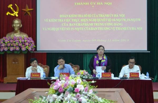 Sáng 8/11, Phó Bí thư Thành ủy, Chủ tịch HĐND TP Nguyễn Thị Bích Ngọc làm trưởng đoàn công tác số 2 của Thành ủy đã làm việc với Quận ủy Nam Từ Liêm về thực hiện Nghị quyết 18-NQ/TW, Nghị quyết 19-NQ/TW và Nghị quyết 15-NQ/TU ngày 4/7/2017 của Ban Thường vụ Thành ủy Hà Nội. Cùng dự có Trưởng Ban Tổ chức Thành ủy Vũ Đức Bảo, Phó Chủ tịch UBND TP Ngô Văn Quý.