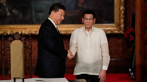 Chủ tịch Tập Cận Bình bắt tay Tổng thống Rodrigo Duterte tại Manila ngày 20.11 REUTERS
