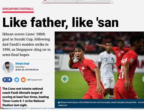 Cha ghi bàn thắng đầu tiên, con "chốt hạ" bằng pha lập công thứ 100 ở AFF Cup, gia đình huyền thoại Fandi được báo chí Singapore ca ngợi là "hổ phụ sinh hổ tử".