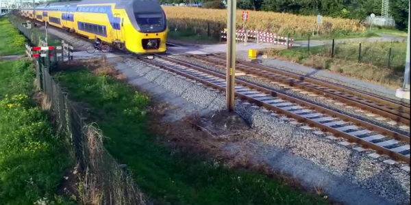 Nam thanh niên Hà Lan liều lĩnh đạp xe qua đường ray chỉ vài tích tắc trước khi tàu vun vút lao qua khiến người xem thót tim.