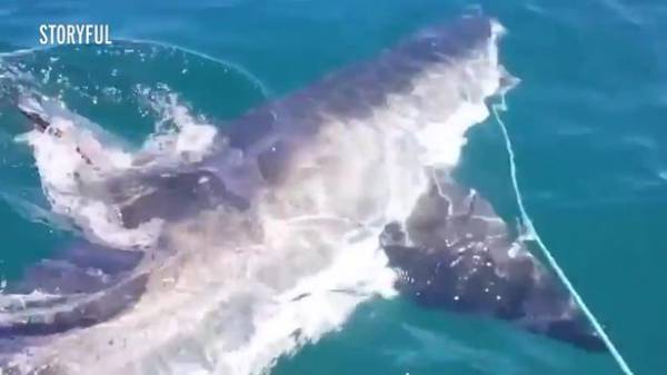 Bỗng dưng anh chàng phát hiện một sinh vật to lớn đang di chuyển về phía con tàu của mình. Cho rằng một con cá heo đang lại gần để vui đùa, anh đưa điện thoại lên để ghi hình và lúc này anh chợt nhận ra kẻ đang tiếp cận tàu cá là một con cá mập trắng dài hơn 3m.