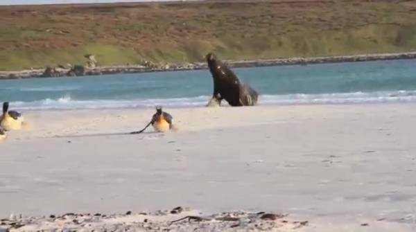 Tưởng chừng như con chim cánh cụt sẽ phải bỏ mạng khi kẻ săn mồi đã ngay sát nút thì bỗng dưng con sử tử biển lại quay đầu đổi hướng, hớt hải chạy ngược về biển không rõ lí do.