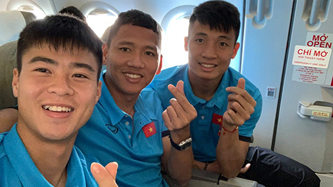 Ngọc Hải, Đức Huy và Xuân Trường "tự sướng" trước giờ lên máy bay