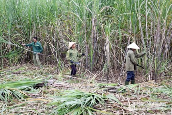 Nông dân huyện Tân Kỳ thu hoạch mía nguyên liệu. Ảnh: Xuân Hoàng