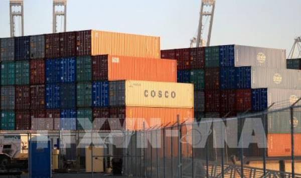 Hàng hóa được xếp tại cảng Long Beach, Los Angeles, Mỹ ngày 23/8/2018. Ảnh: THX/ TTXVN