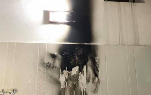 Sau khi bật được 5 phút thì nghe tiếng tách rồi thấy đèn tóe lửa và nổ bụp. "Em chạy vội ra cầu thang để dập cầu giao vì sợ chân tay đang ướt mà rút dây điện máy sưởi lỡ bị giật thì khổ", người mẹ kể lại.