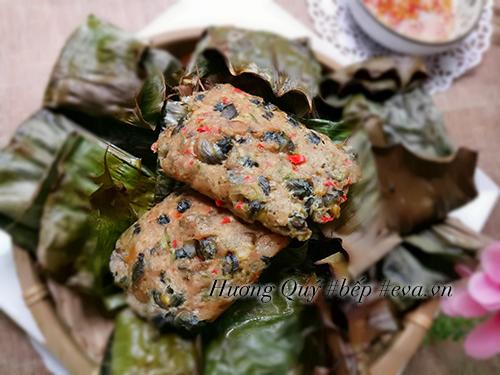 Cho chả ốc vào vỉ nướng hoặc trong lò nướng nướng đến khi thịt ốc chín. Chả ốc nướng lá chuối chấm với mắm gừng.